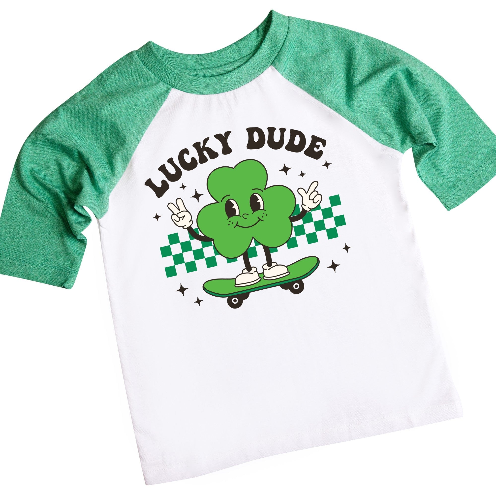 Lucky Dude Retro Boys St. Patrick's Day Raglan