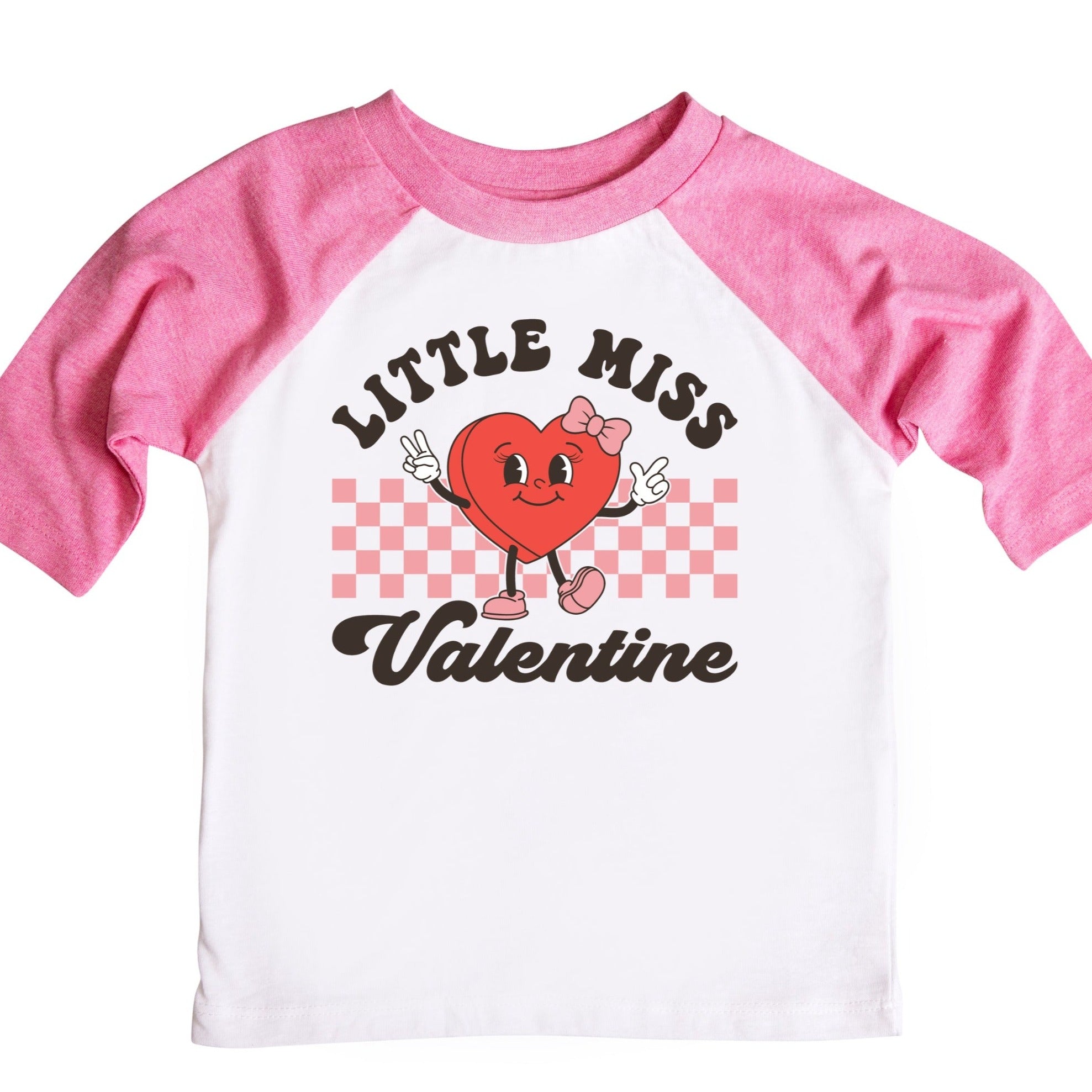 Little Miss Valentine Girls Retro Valentines Raglan - Wholesale