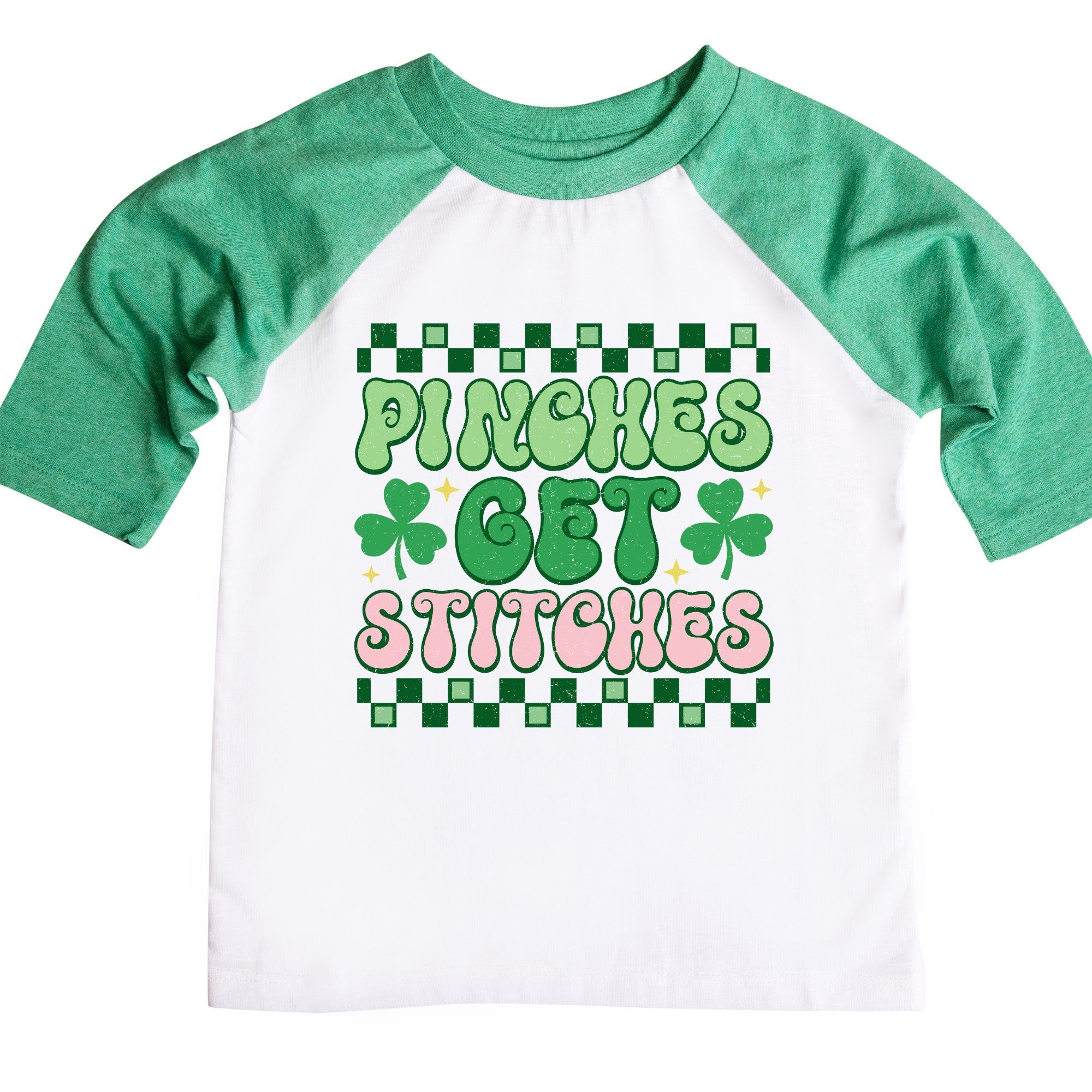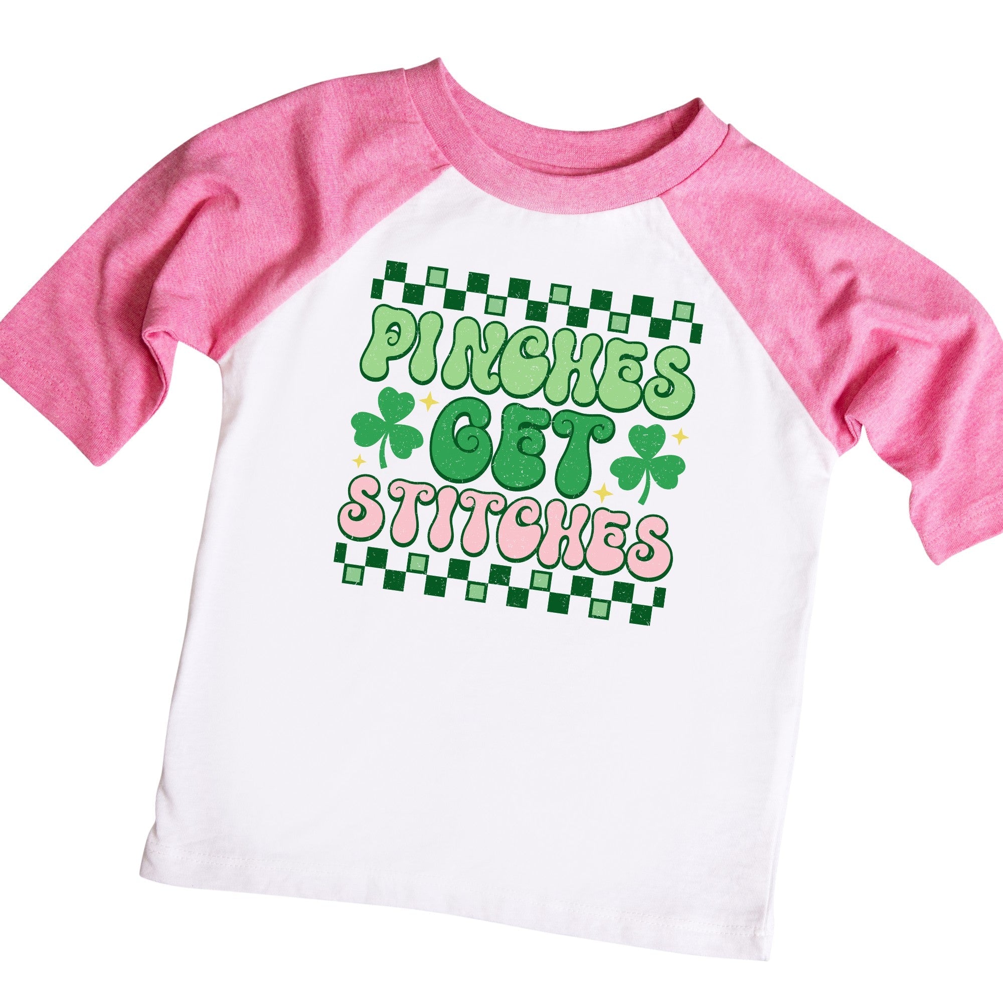 Pinches Get Stitches Girls St. Patrick's Day Shamrock Raglan