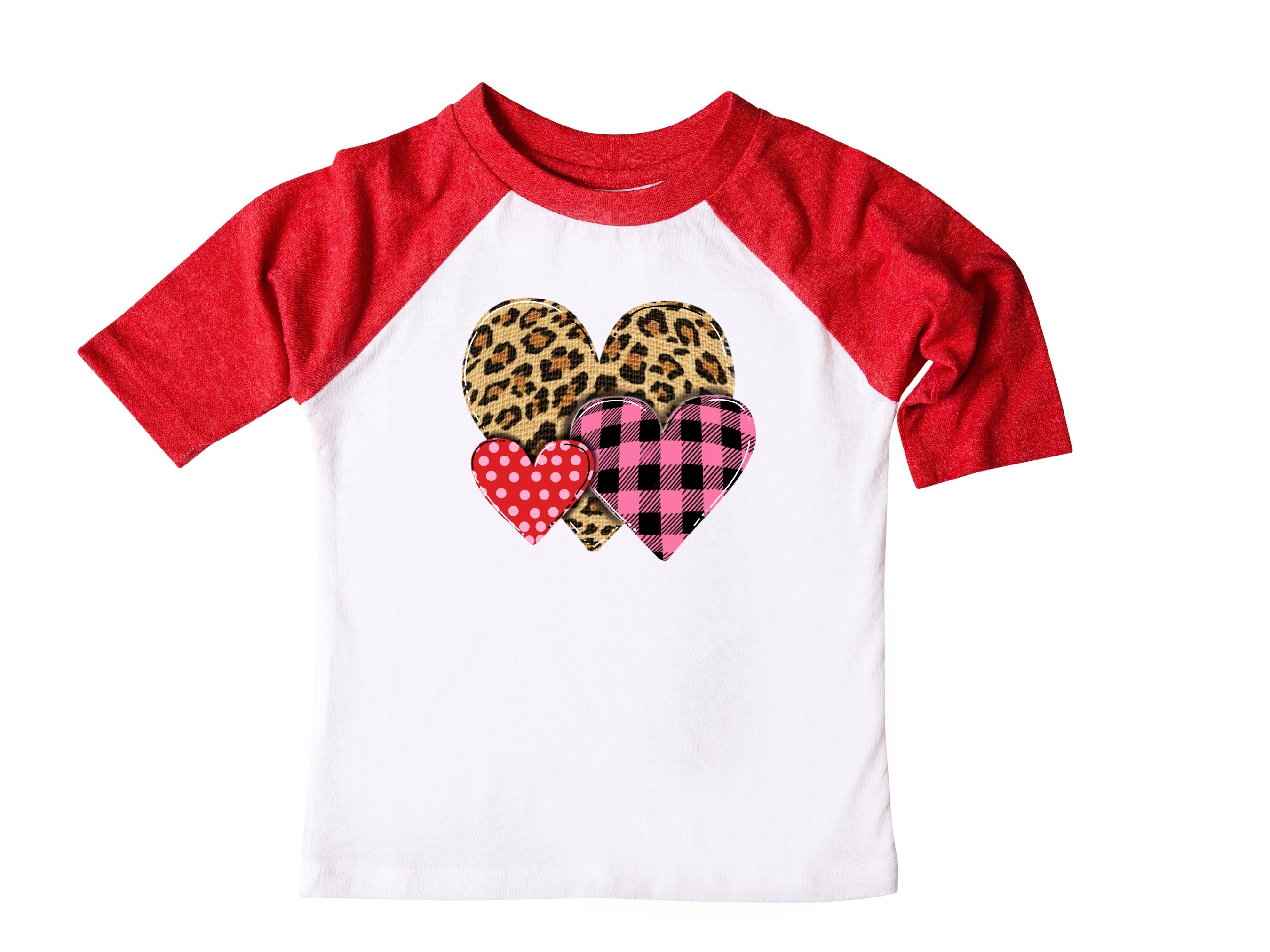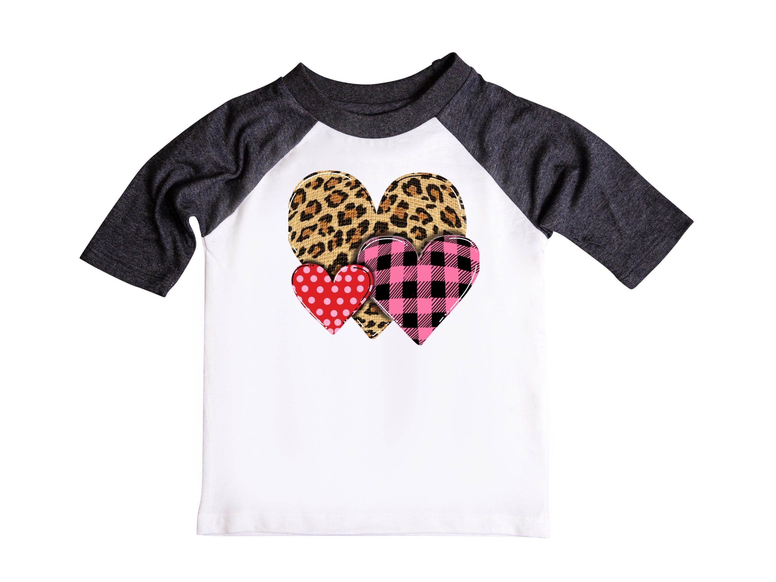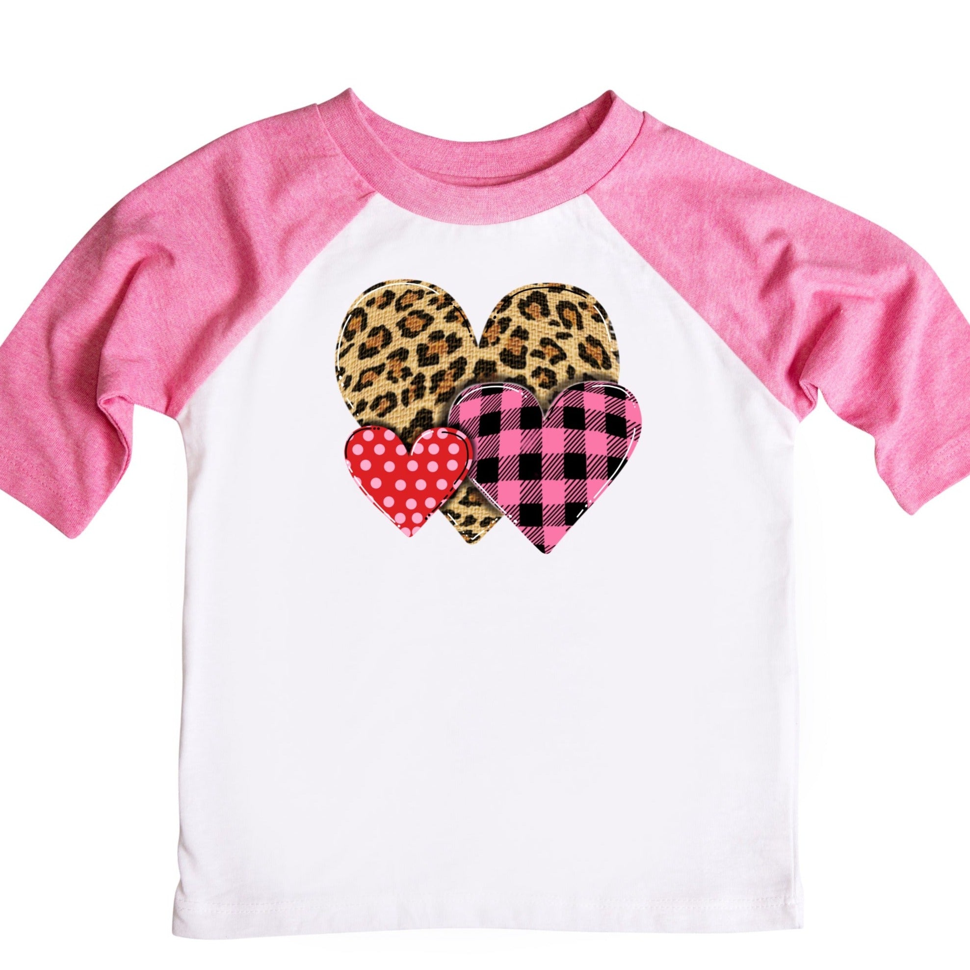 Leopard Print Hearts Girls Valentines Raglan - Wholesale