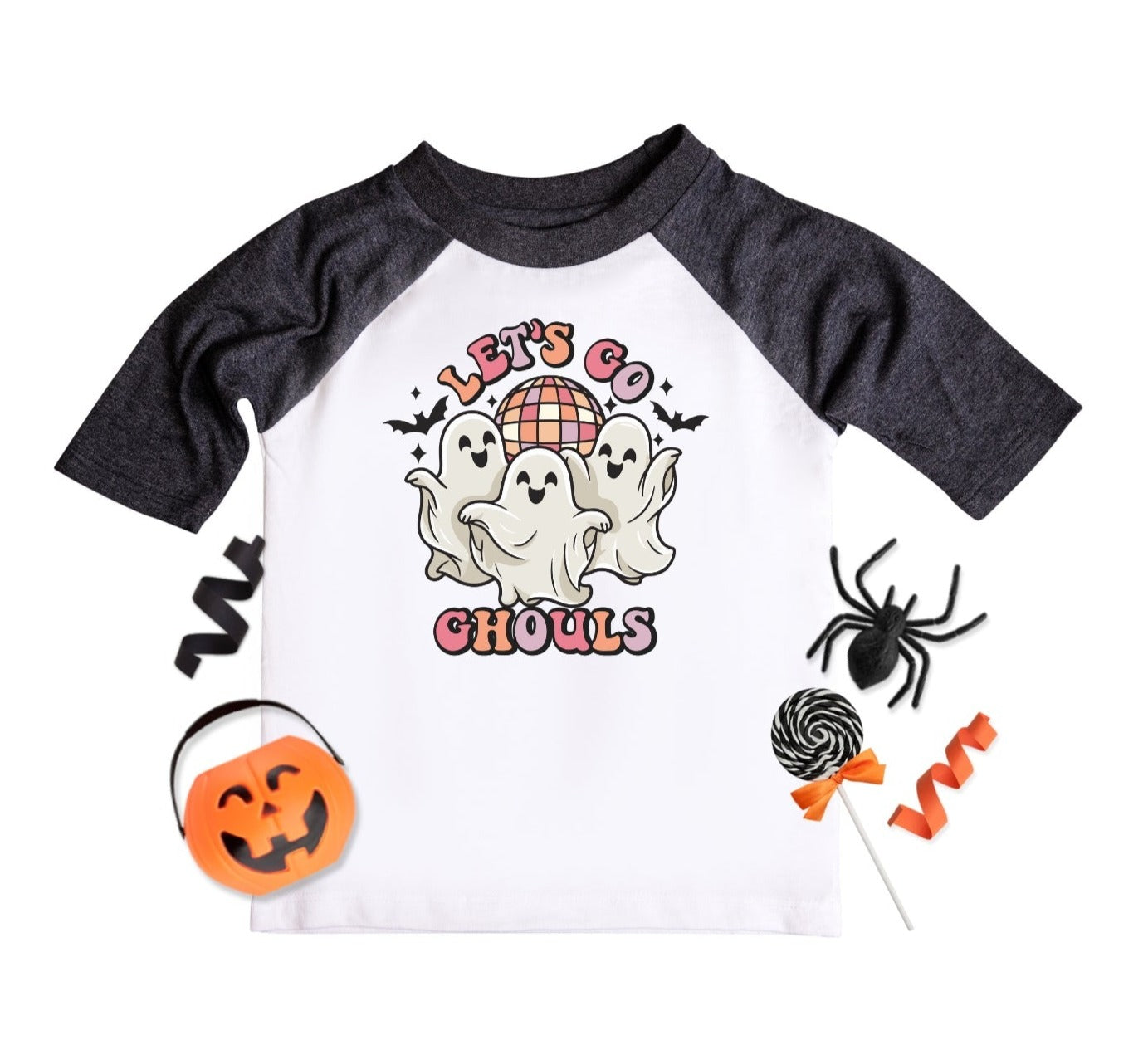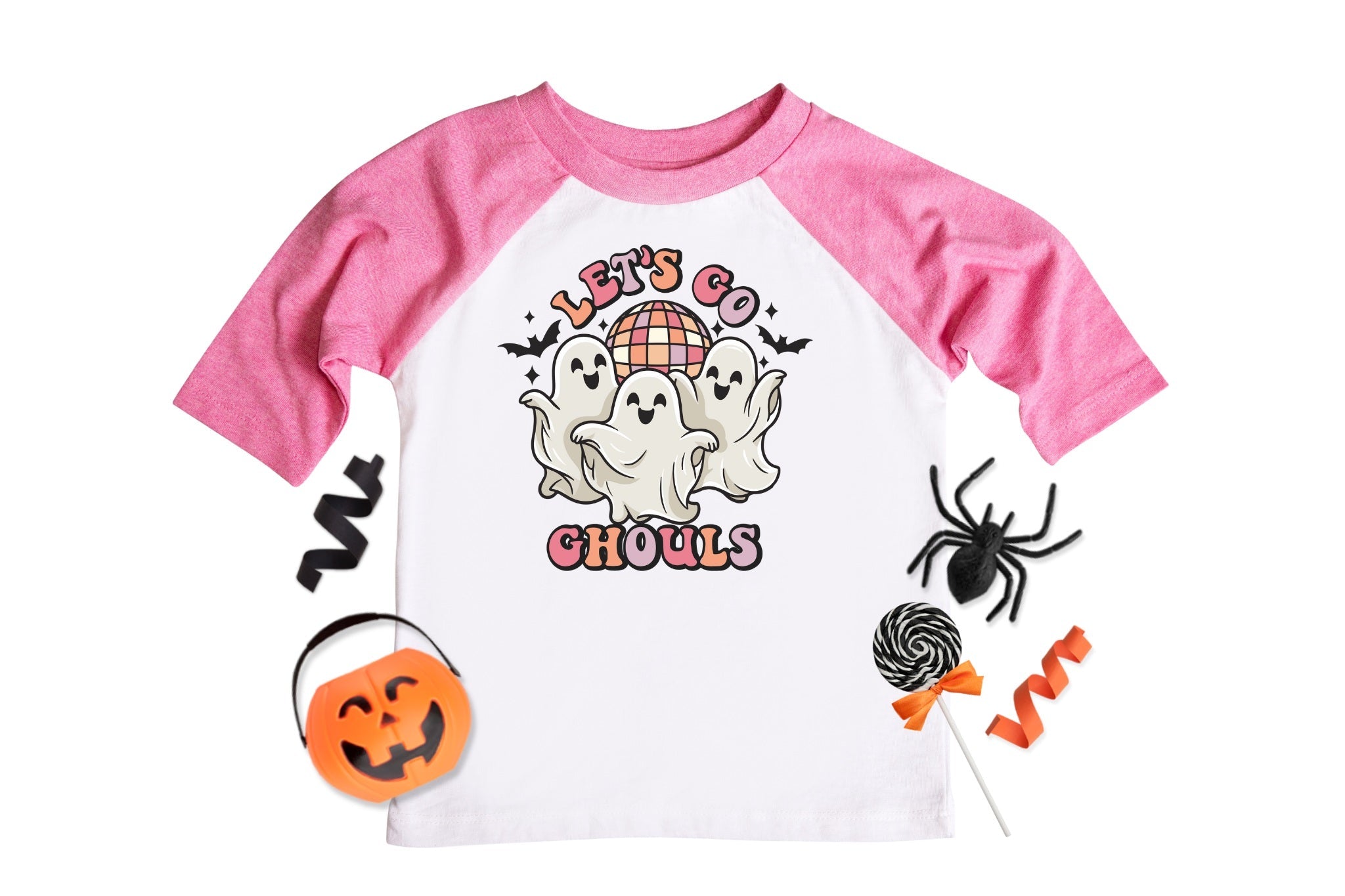 Let's Go Ghouls Girls Retro Ghost Halloween Raglan